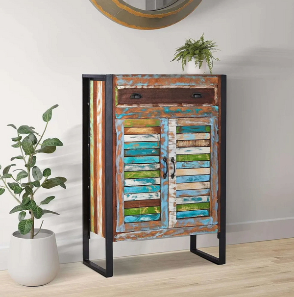 Wooden Multipurpose Cupboard & Shoe Rack – Spacious Storage Cabinet with Seating for Home, Entryway & Living Room (Large, Teak Finish)