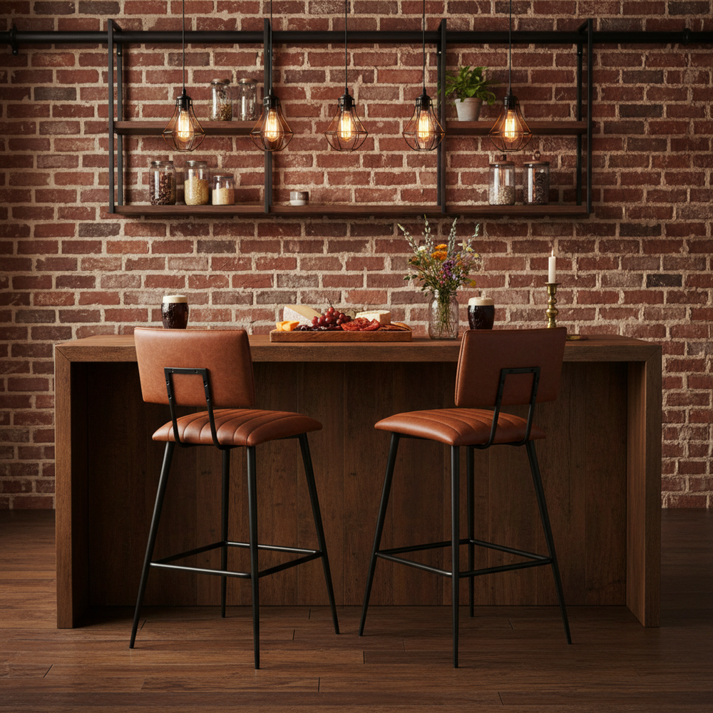 Bar Stool for Home bar, Counter Stool Chair Modern, Shop Industrial Stool with footrest, Black Metal and Wood, Set of 2