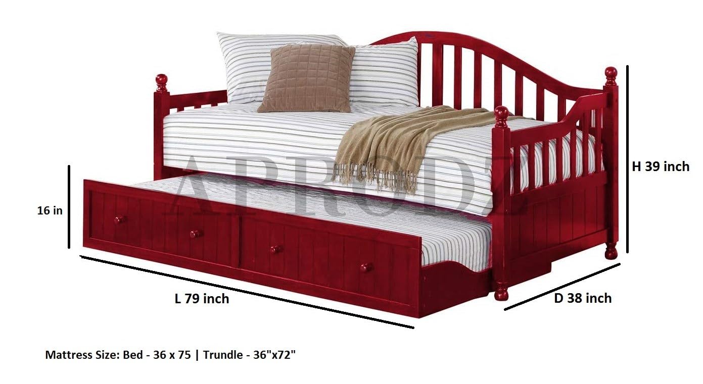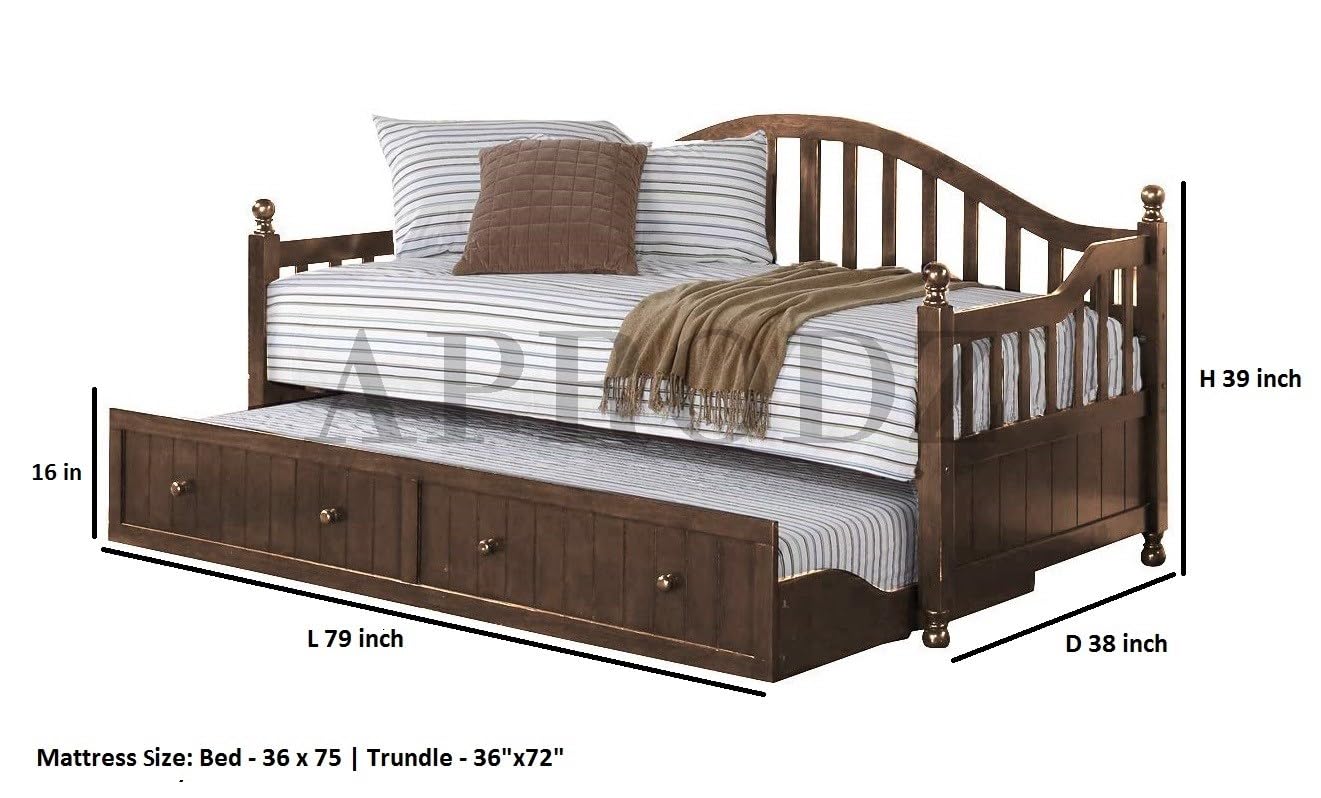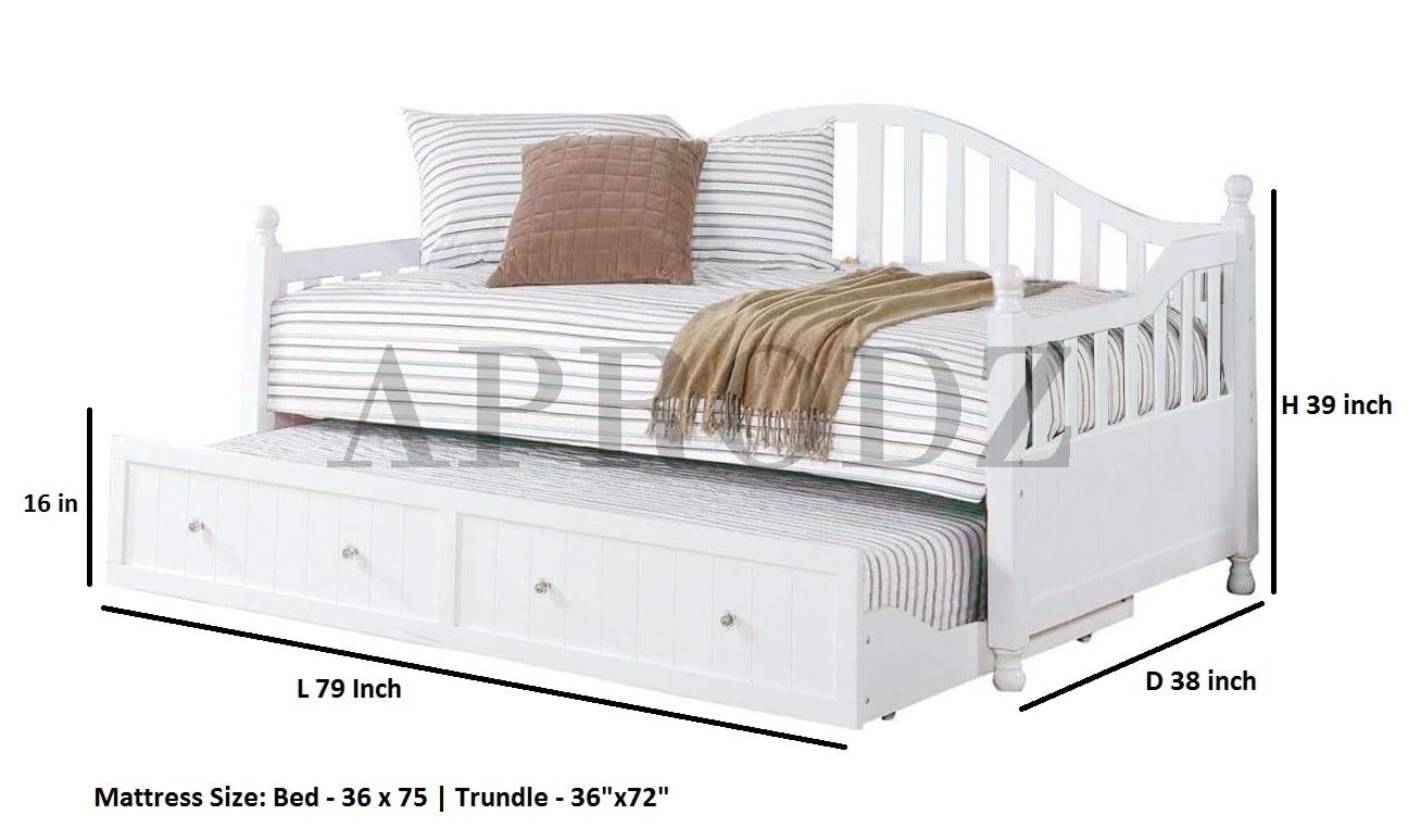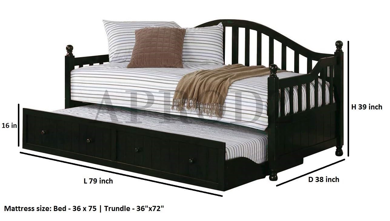 - Mattress size: Bed - 36 x 75 | Trundle - 36"x72". Mattress not included.