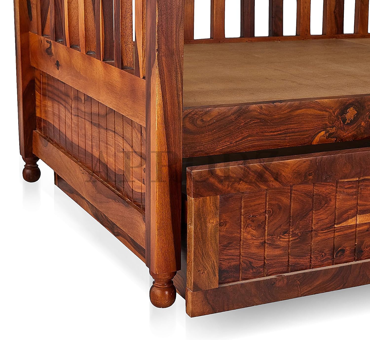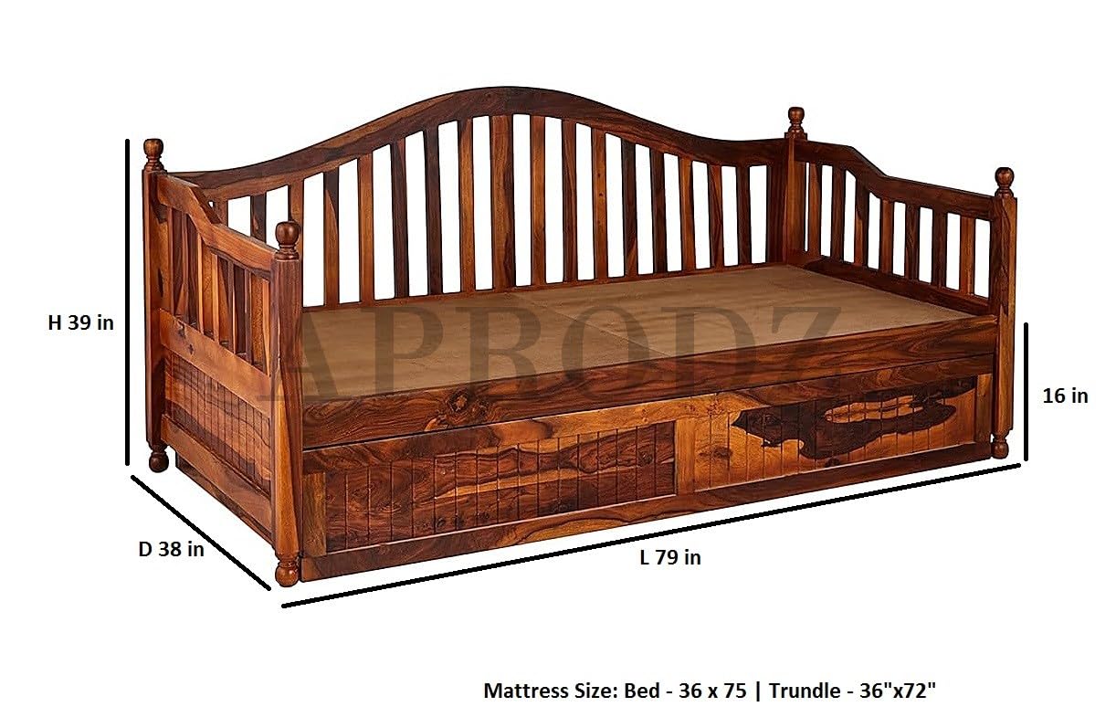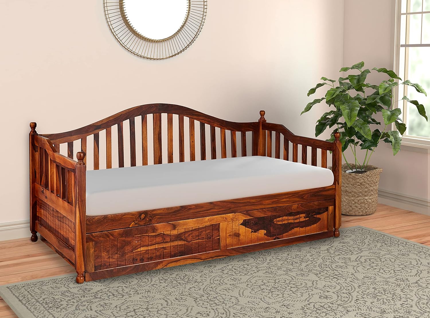 Drummo Sheesham Wood Daybed with Trundle Bed