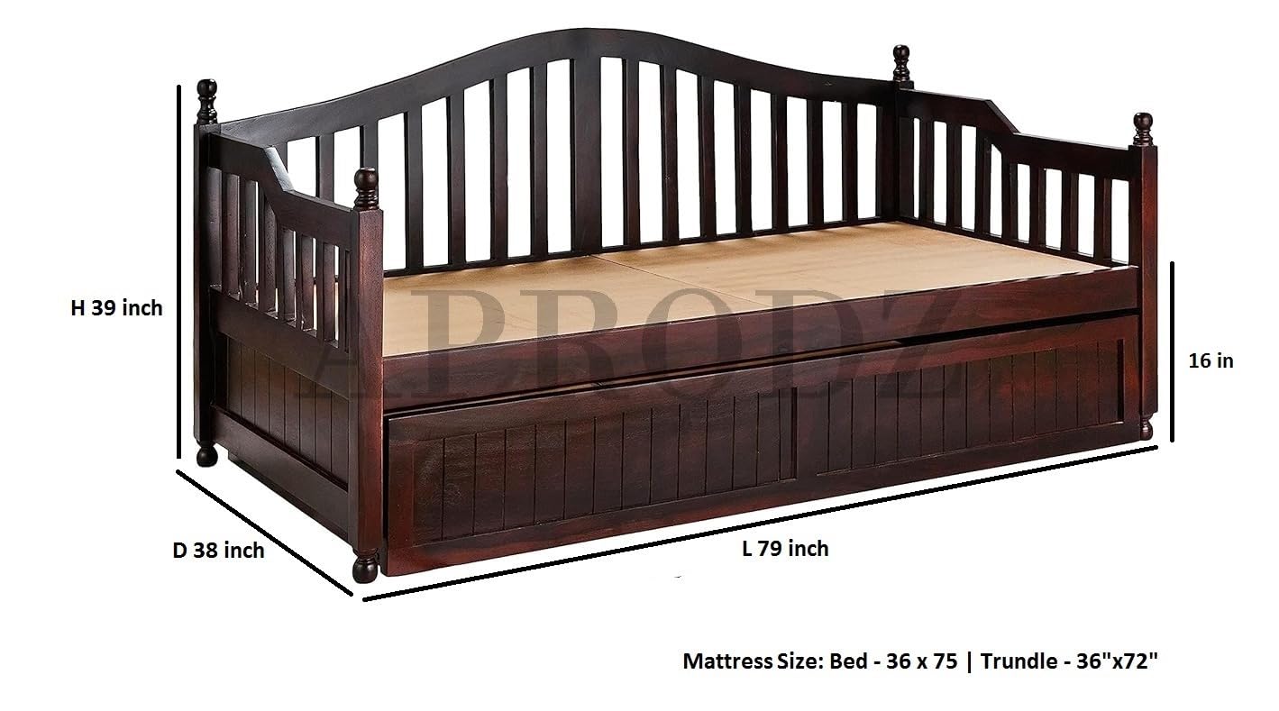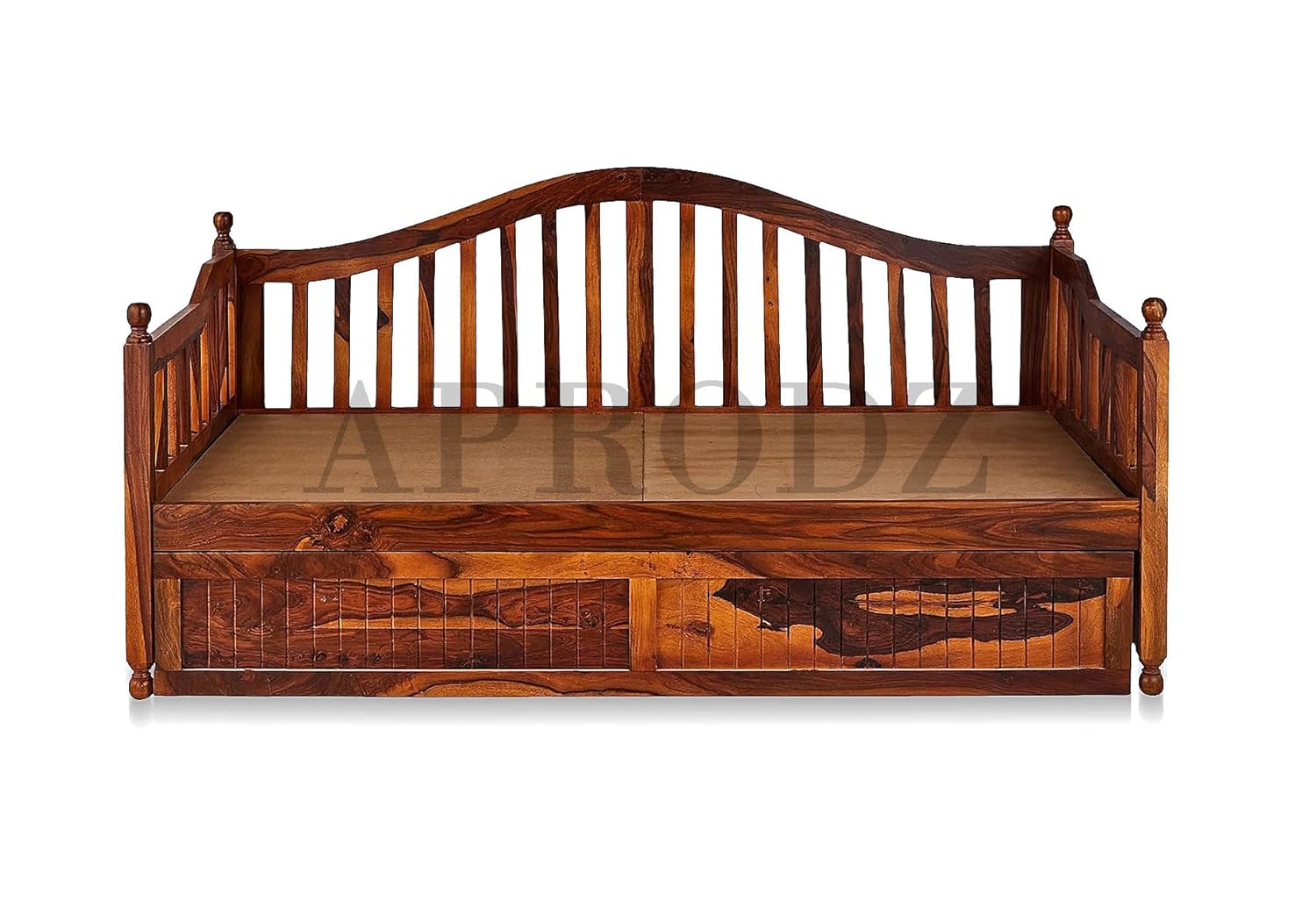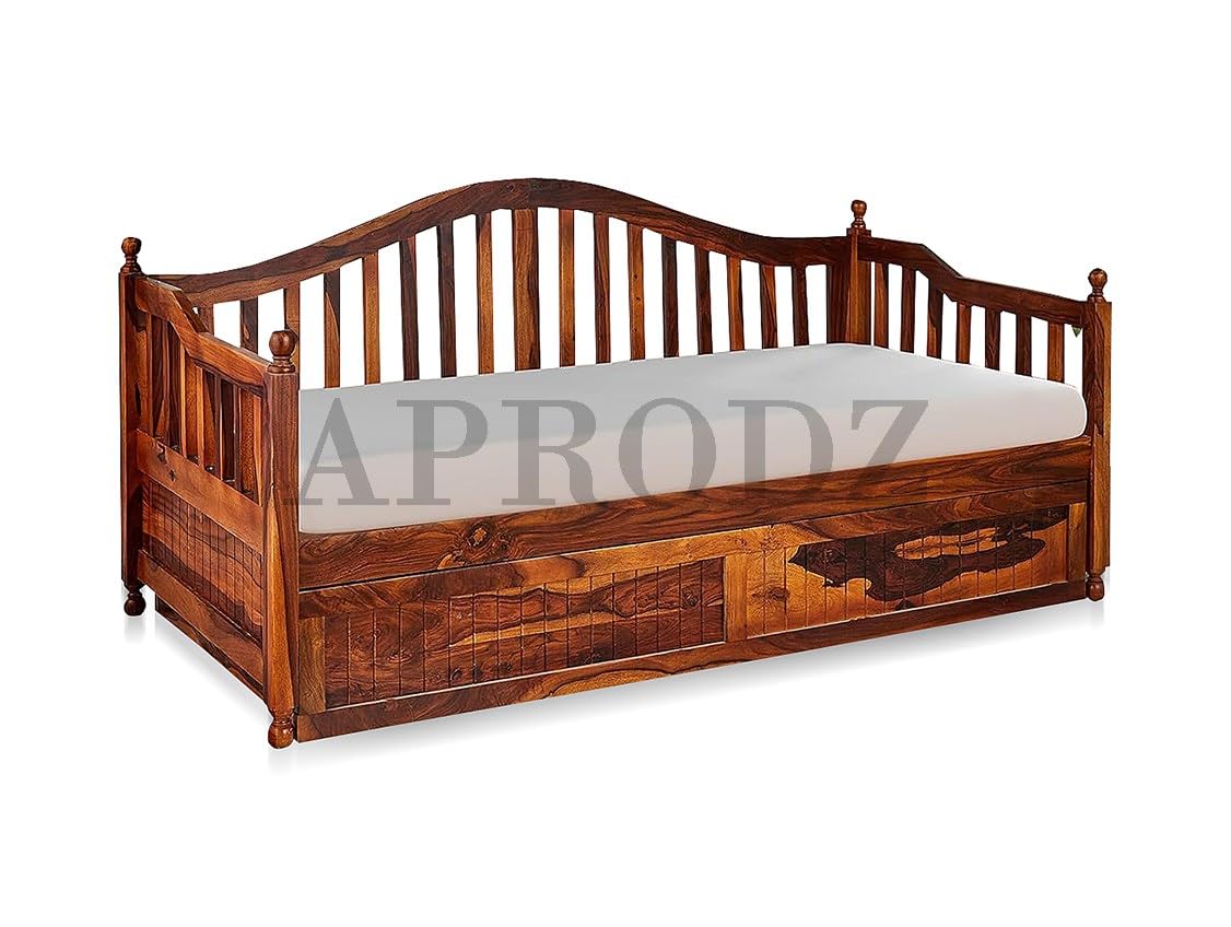 Drummo Sheesham Wood Daybed with Trundle Bed