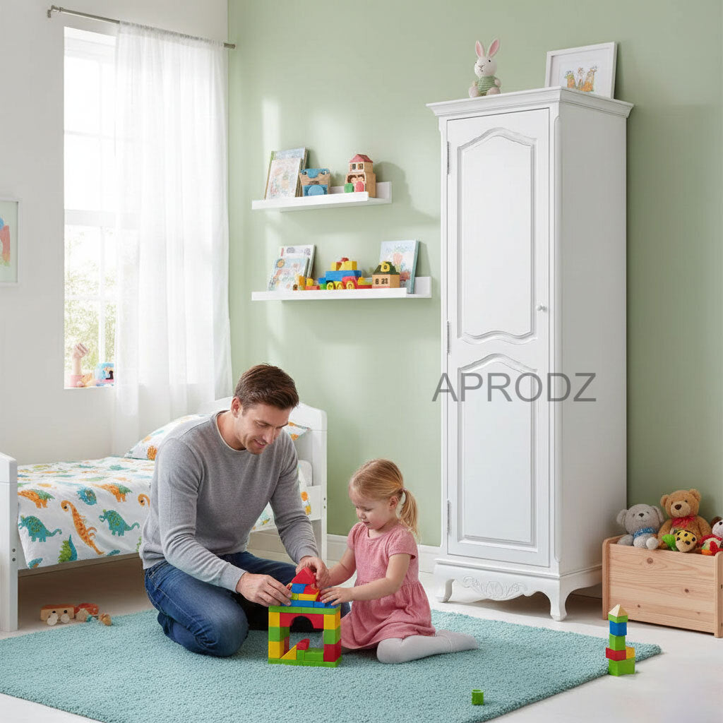 Mango Wood Multipurpose Storage 1-Door Libson Wardrobe Almirah for Living Room | White Finish