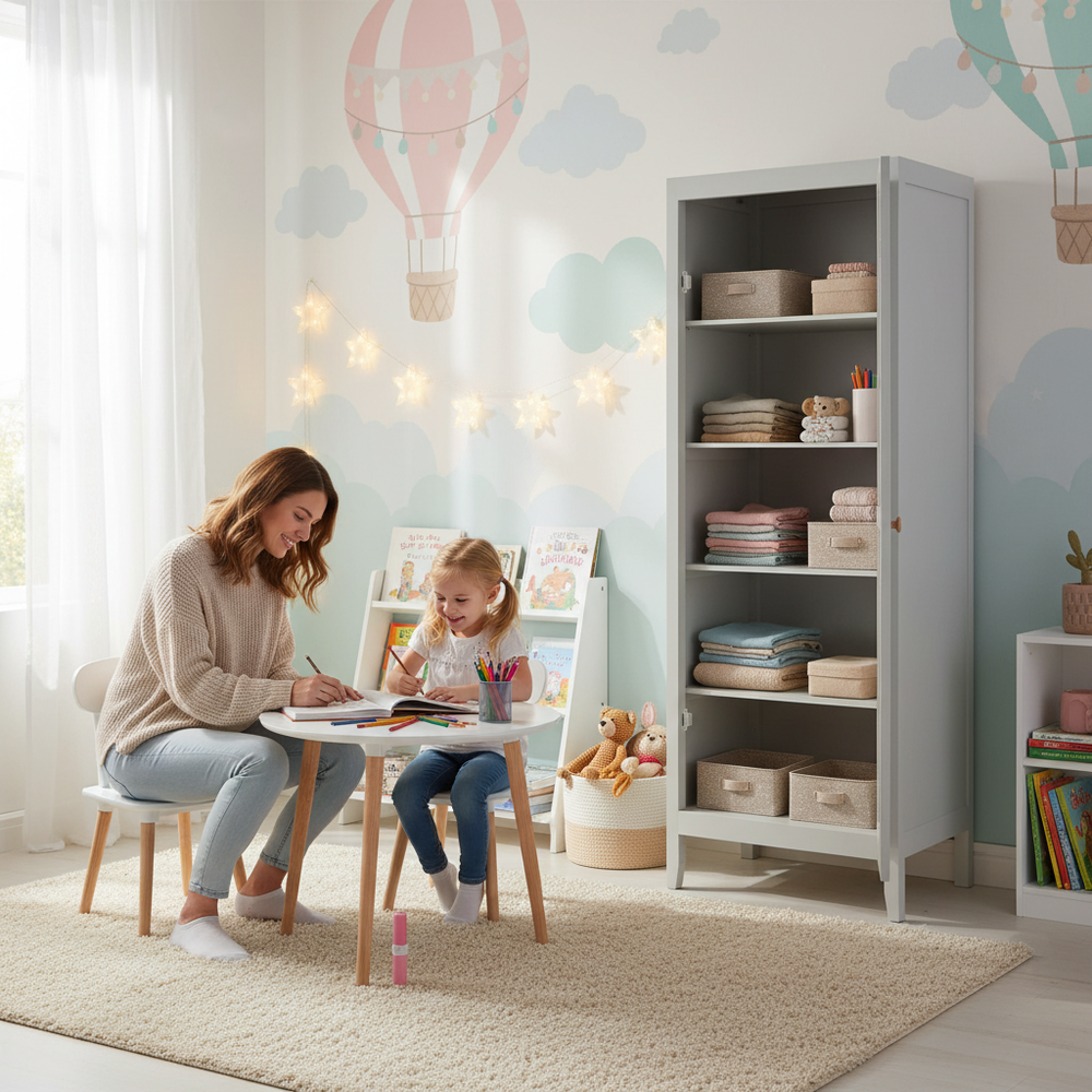 The pastel GREY colour of this wooden wardrobe will immediately dazzle in baby's nursery. This wardrobe provides essential storage space: a hanging rail, one removable shelf and two fixed shelves. The design detail: the door with mouldings. You'll love: its updated vintage style to furnish baby's nursery!
