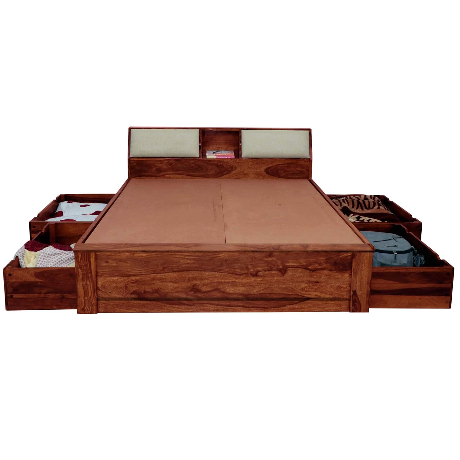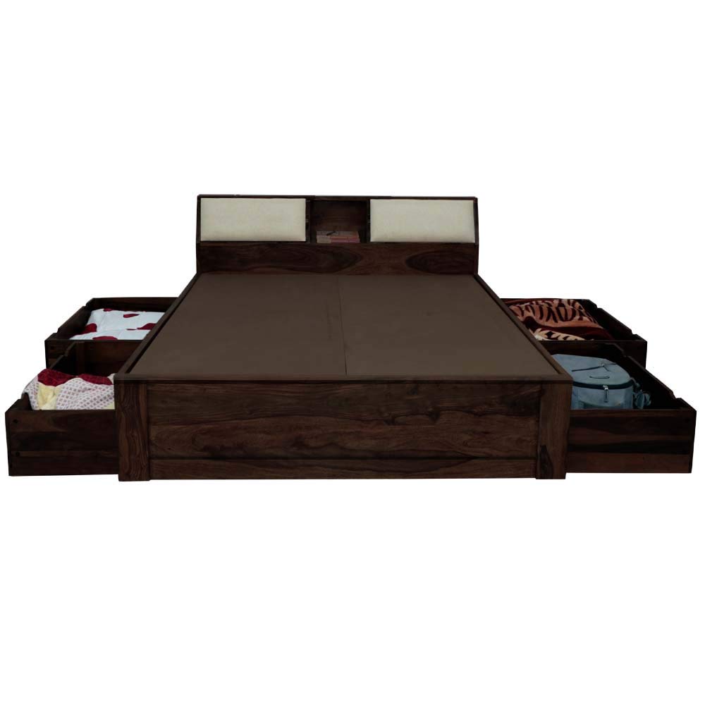 The Allure bed offers a comfortable headboard if you wish to just sit up and read or work. The headboards also come with built-in storage and you will get sufficient storage space under the mattress as it has 4 drawers. This bed made from the finest Sheesham wood longevity and gives a wholesome look to your bedroom.