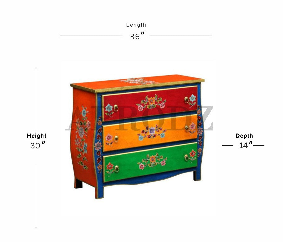 Wooden Handpainted Chest of Drawer Cabinet for Storage (Multicolor)