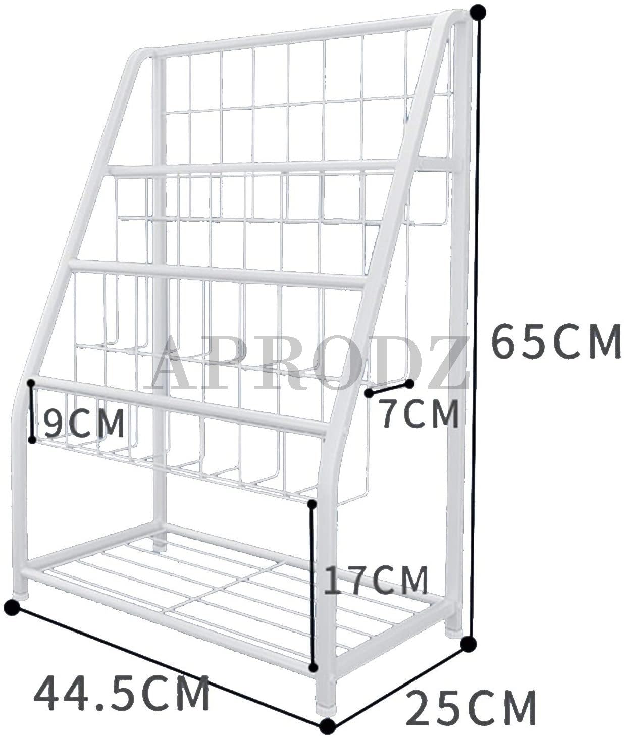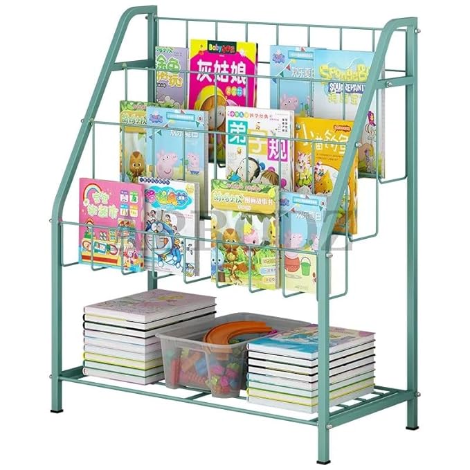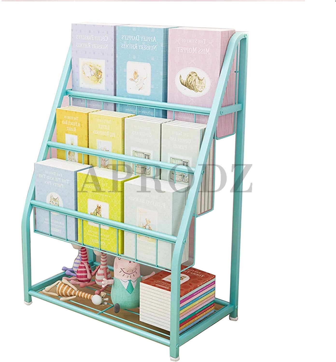 Aprodz children's three storey metal floor to ceiling picture book rack made of metal has beautiful look. It gives ample space for storing books, toys and other beatiful items.
