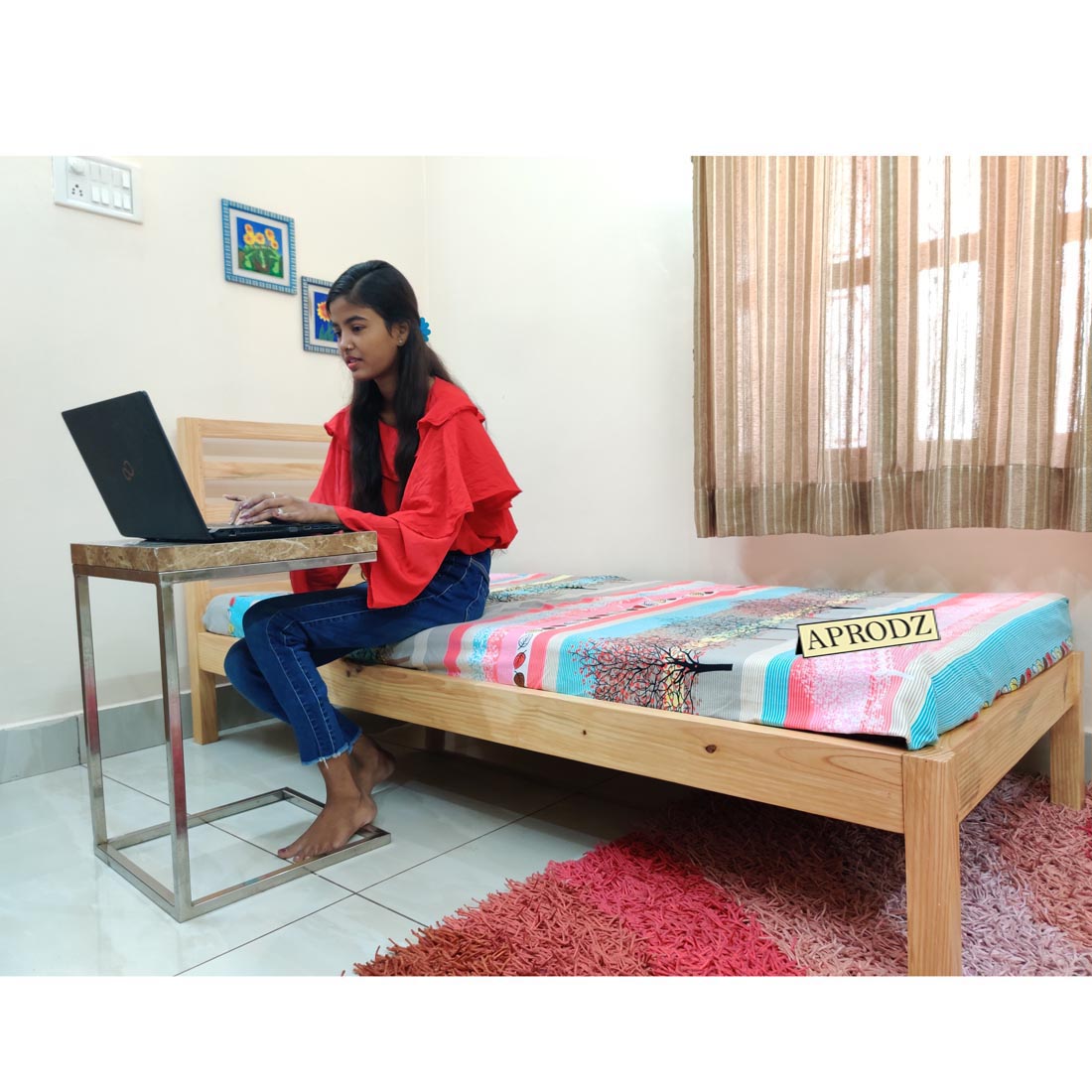 Aprodz pine wood bed for single user is a perfect piece of furniture for restaurants, hotels, lodge or resort hotels. The compact design gives enough space for a single user of the bed to sleep comfortably. The quality solid pine wood polished in natural wood stain makes the single bed strong and fit for any interior setup. A good choice for your kids' room as well.