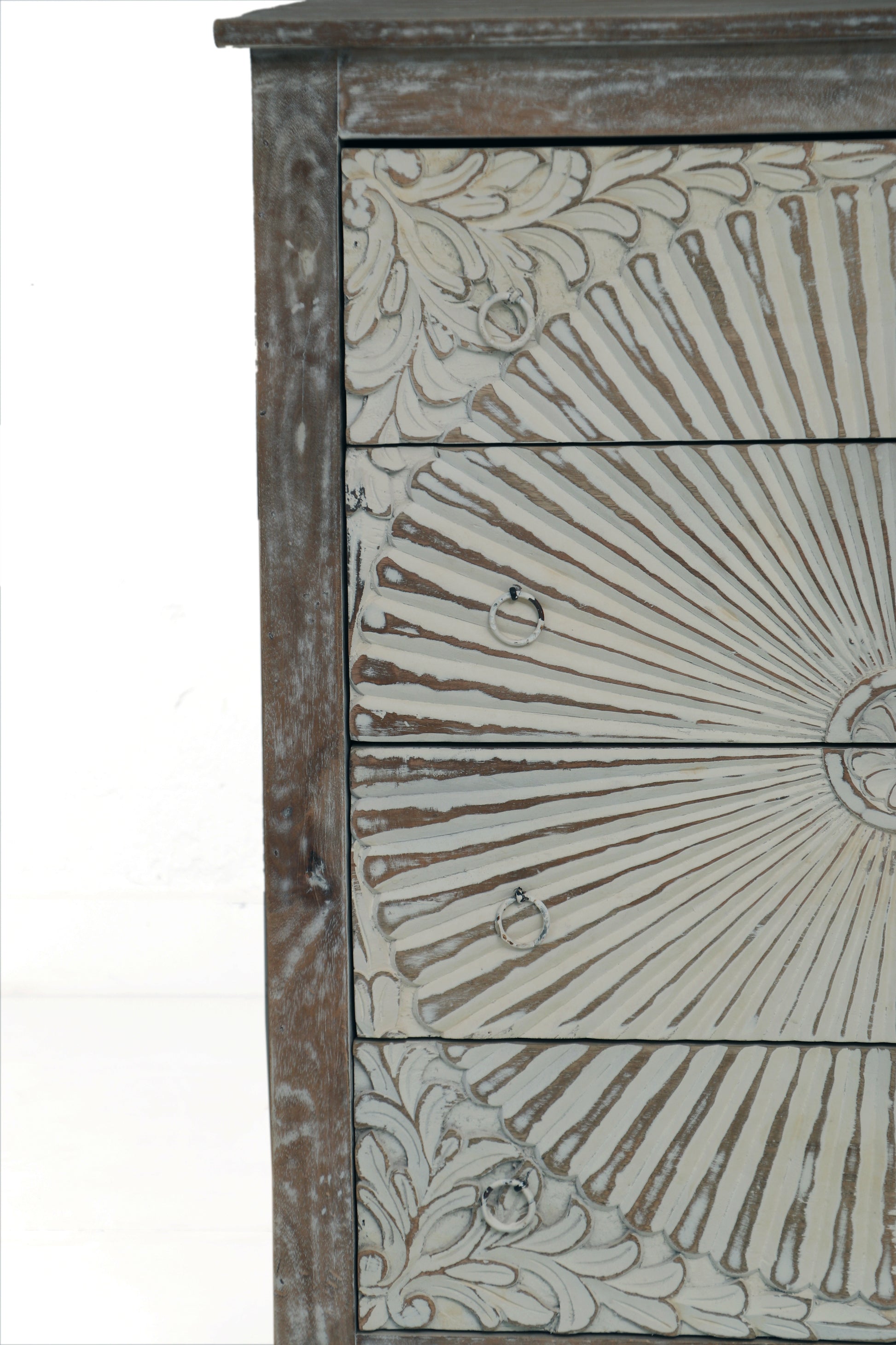 Add timeless charm to your space with the Aprodz Hand-Carved Mango Wood Chest of Drawers. Crafted from durable solid wood, this elegant storage unit features four spacious drawers with intricate carvings. Perfect for bedrooms, living rooms, or hallways, it offers both functionality and rustic appeal to elevate your home décor.