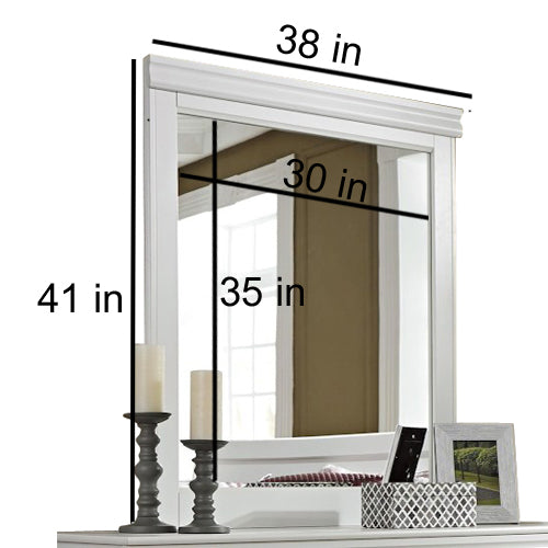 - Primary Material: Mango Wood, Color : White finish, Design: contemporary.Saint Gobain or Modi Mirror is used