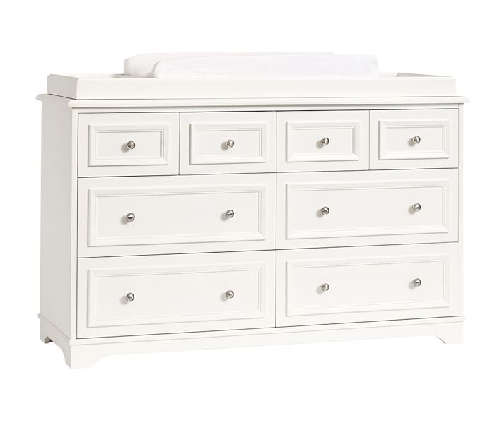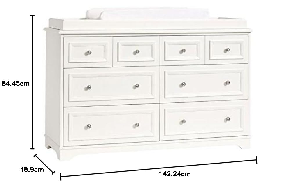 Mango Wood Norto Extra Wide Dresser & Topper Set with Topper Mattress Changing pad is Also Included -White
