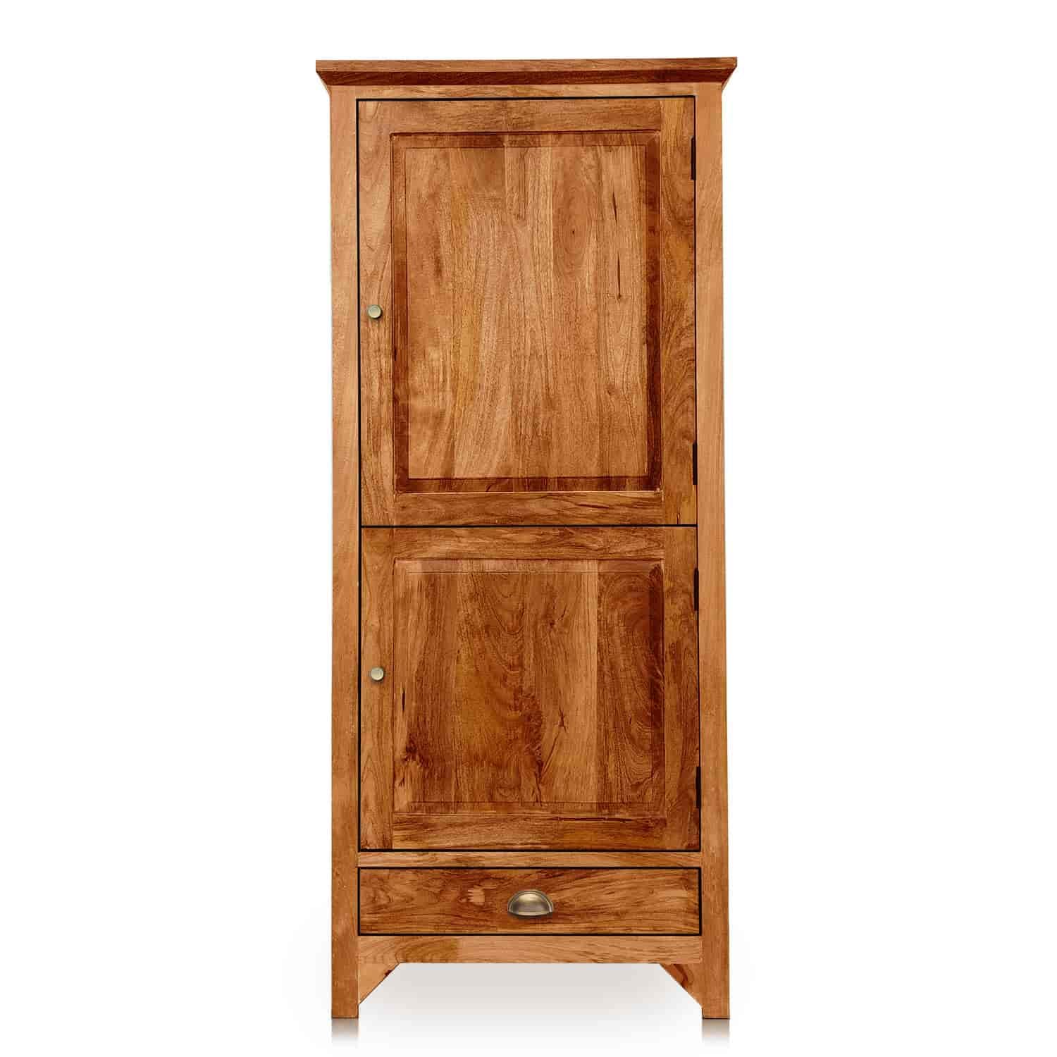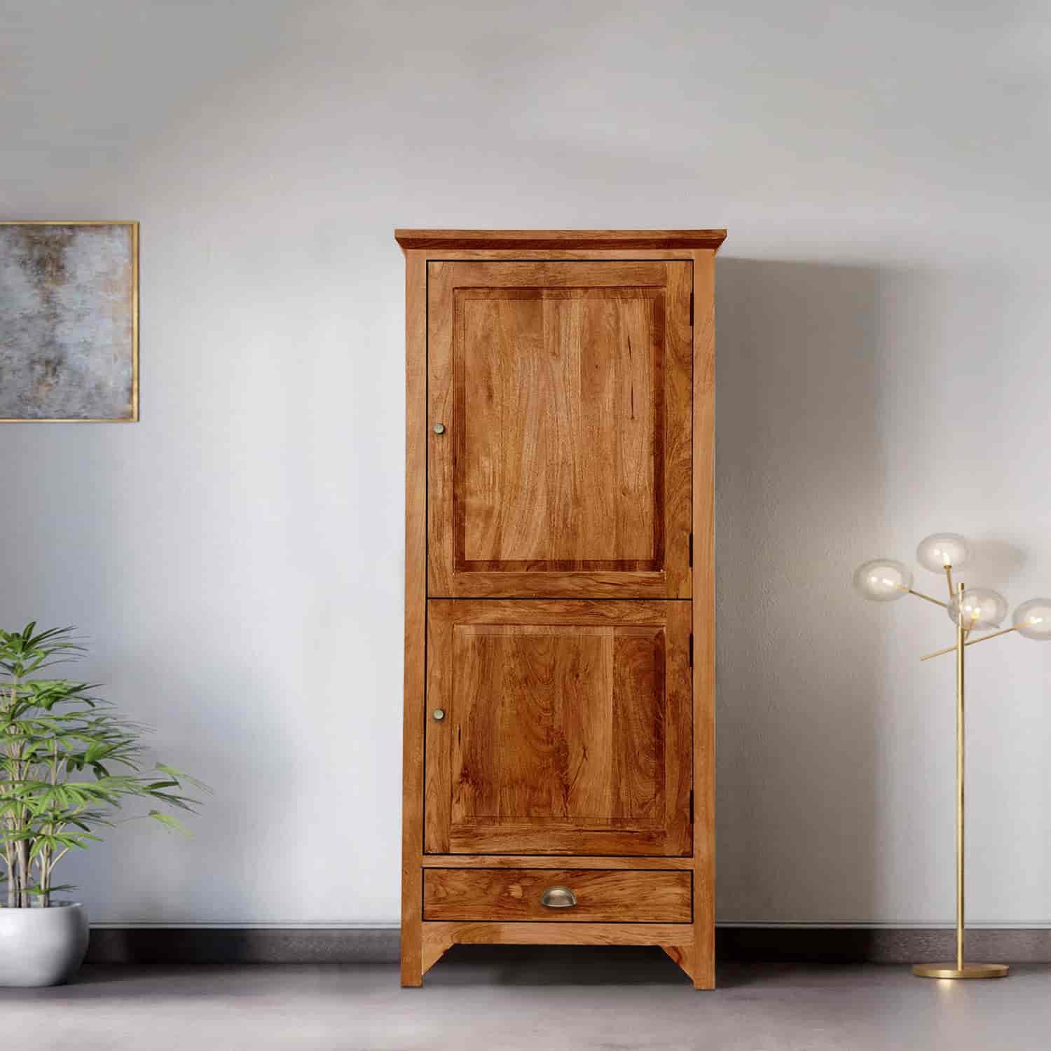 Crafted from premium solid mango wood, the Aprodz Wardrobe offers a blend of elegance and durability. Featuring two spacious doors, internal shelves, and a sturdy hanging rod, it provides ample storage for clothes and essentials. Its natural finish and timeless design make it a perfect fit for any bedroom décor.