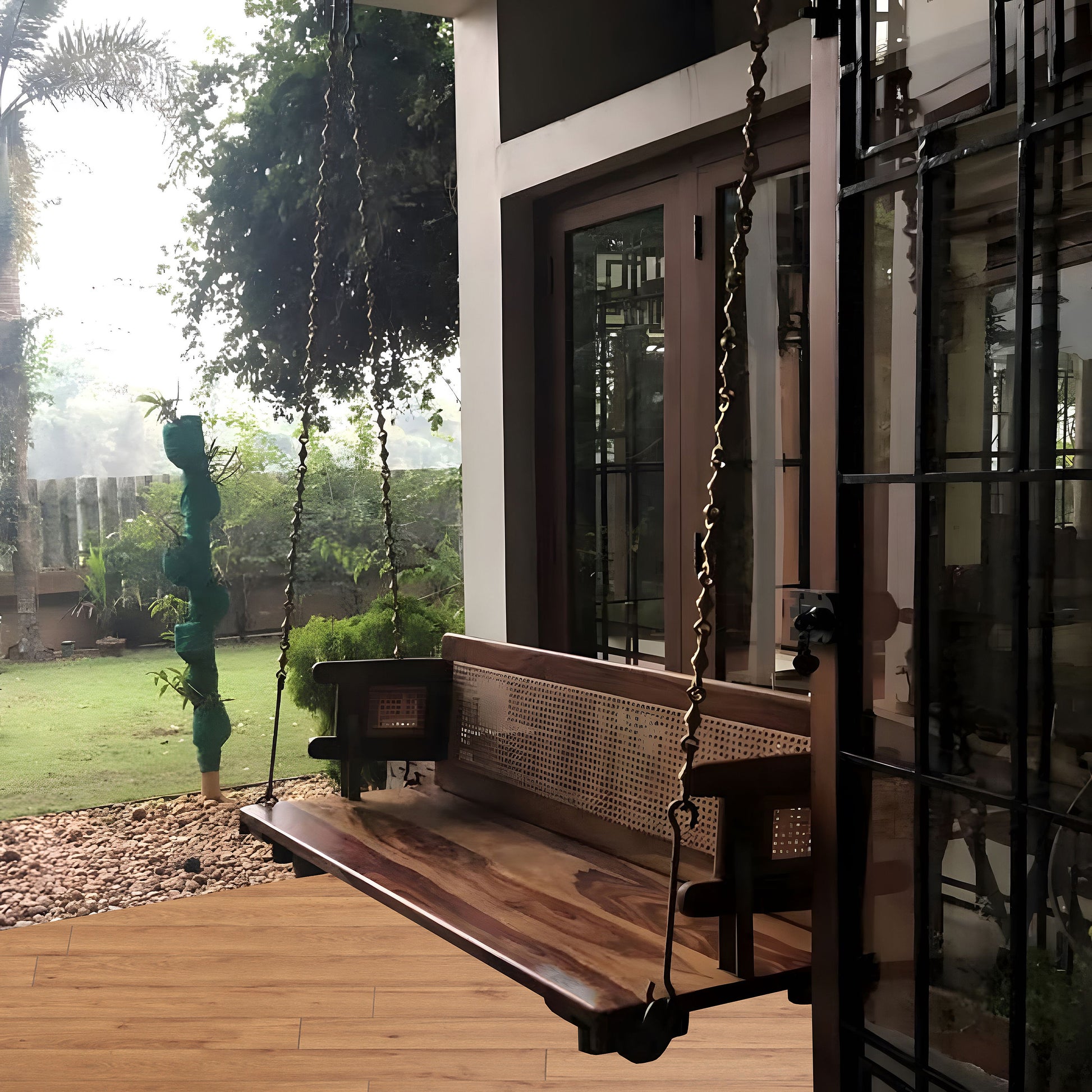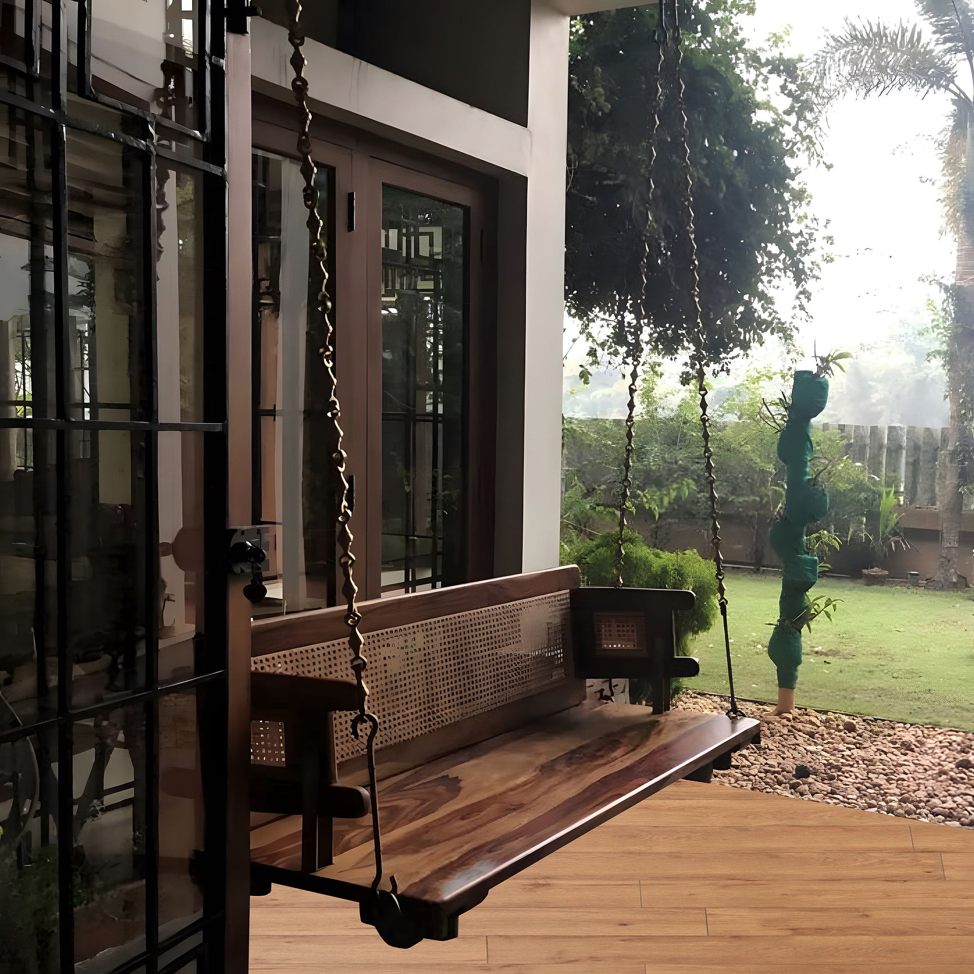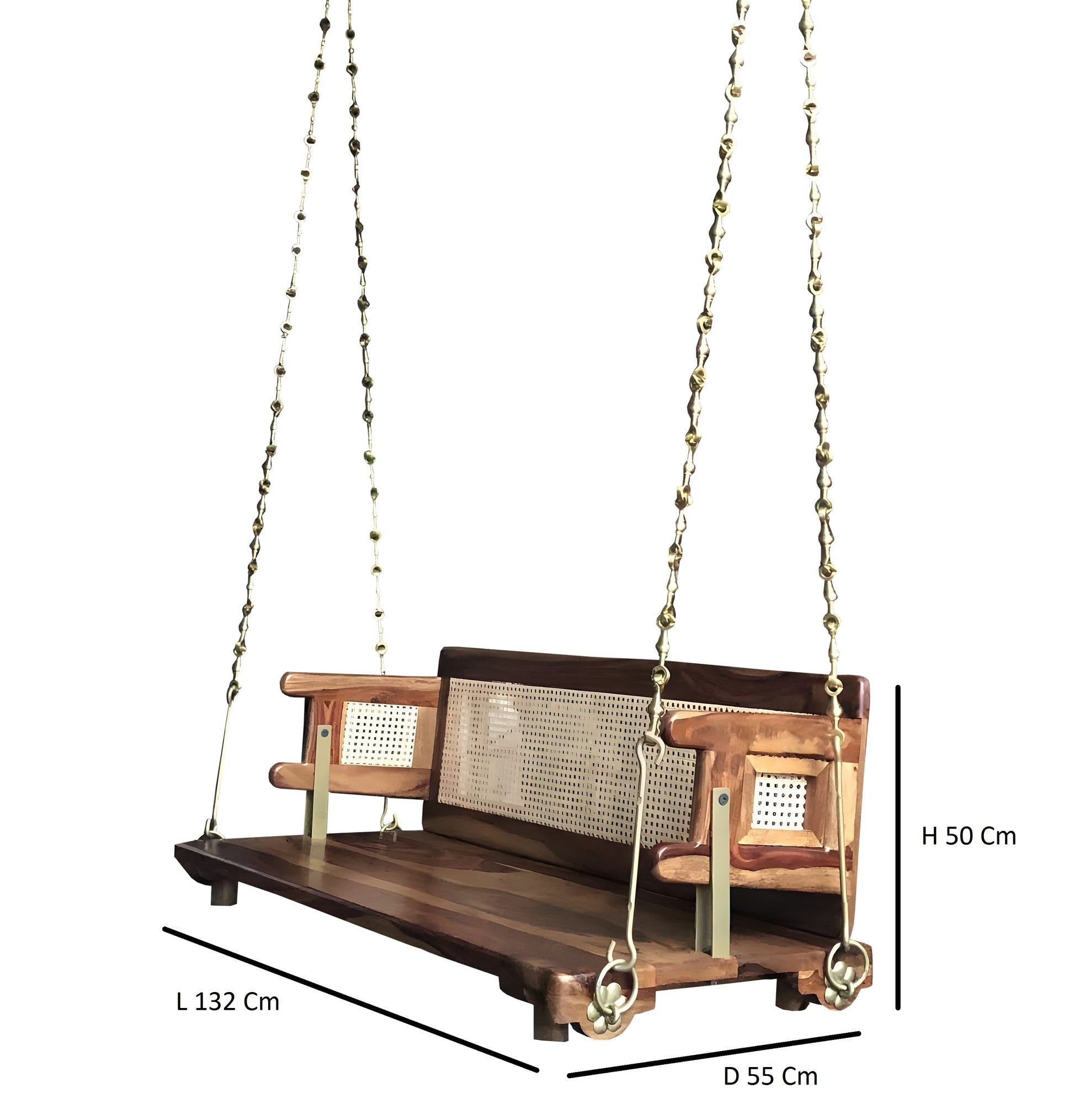 Reversible Wooden Swing Jhula with Brass Chainfor Indoor Outdoor & Balcony | House Swings for Adults (52 Inches, Honey Finish)