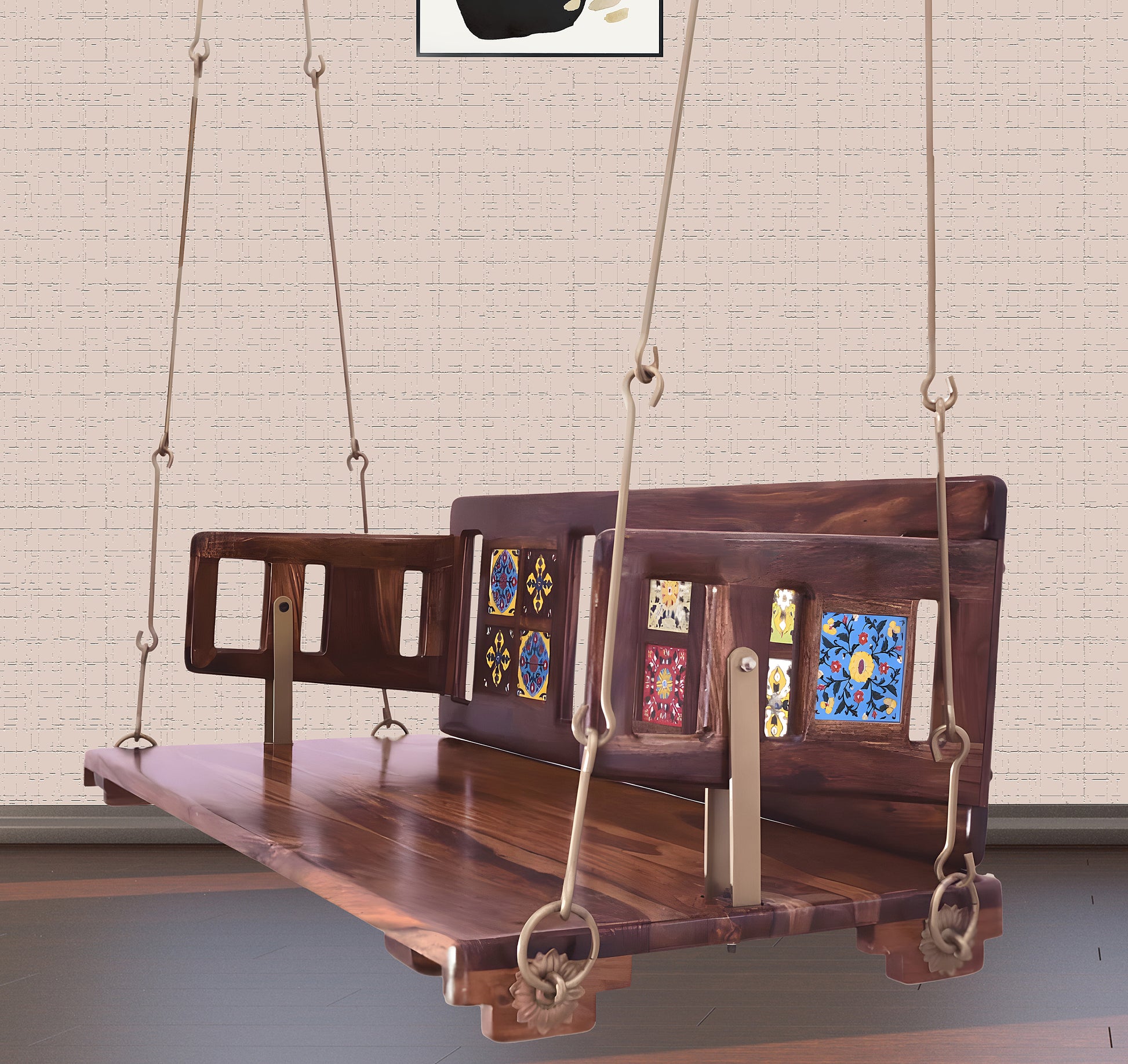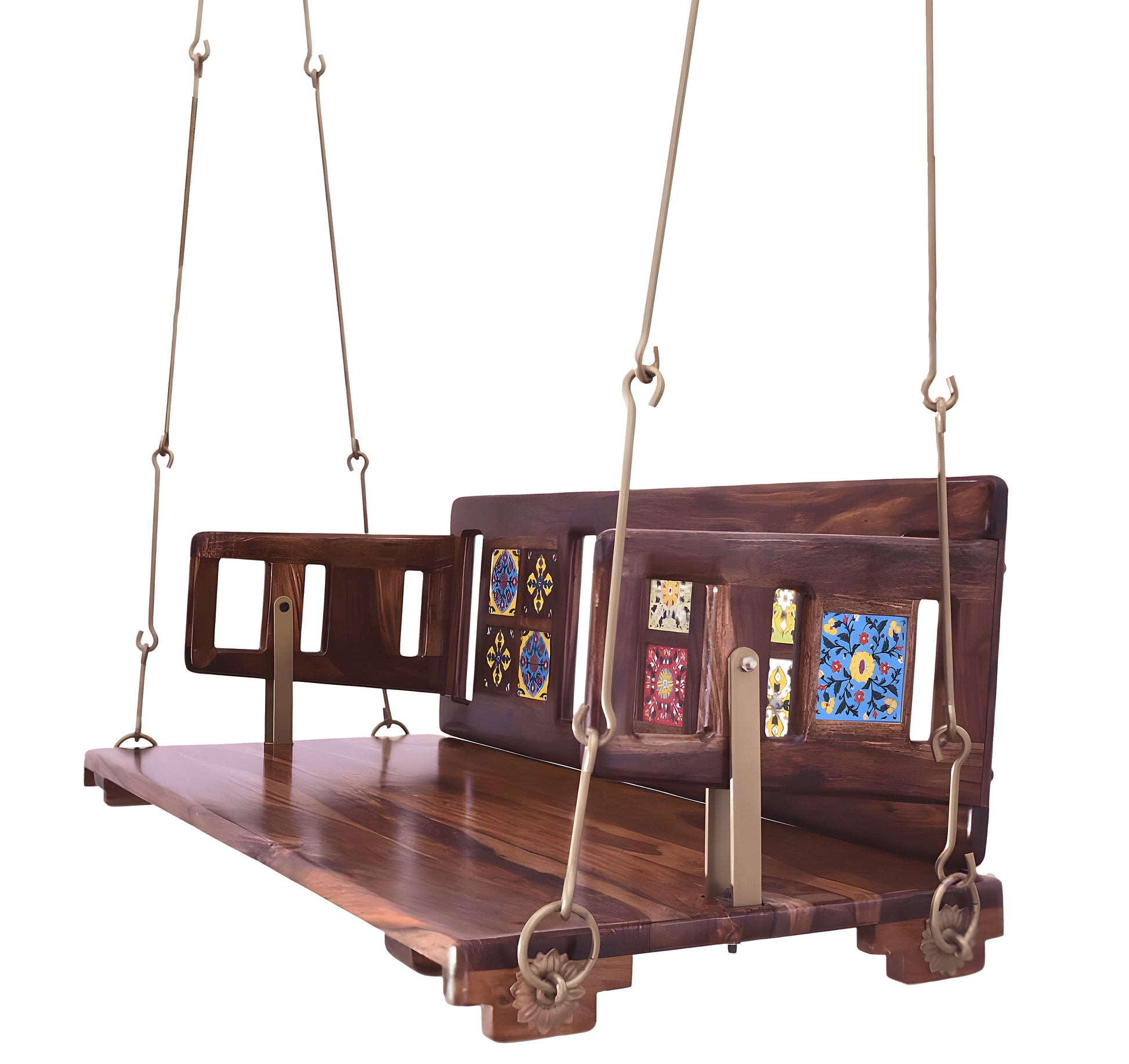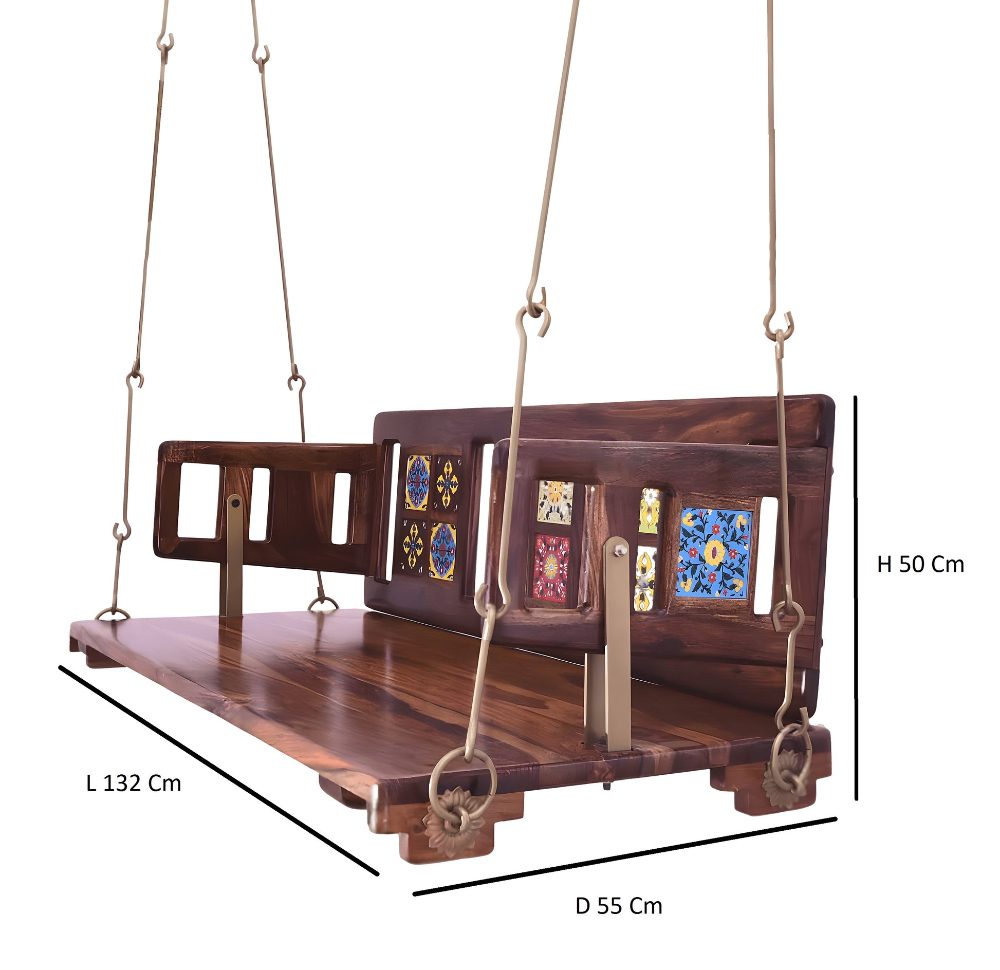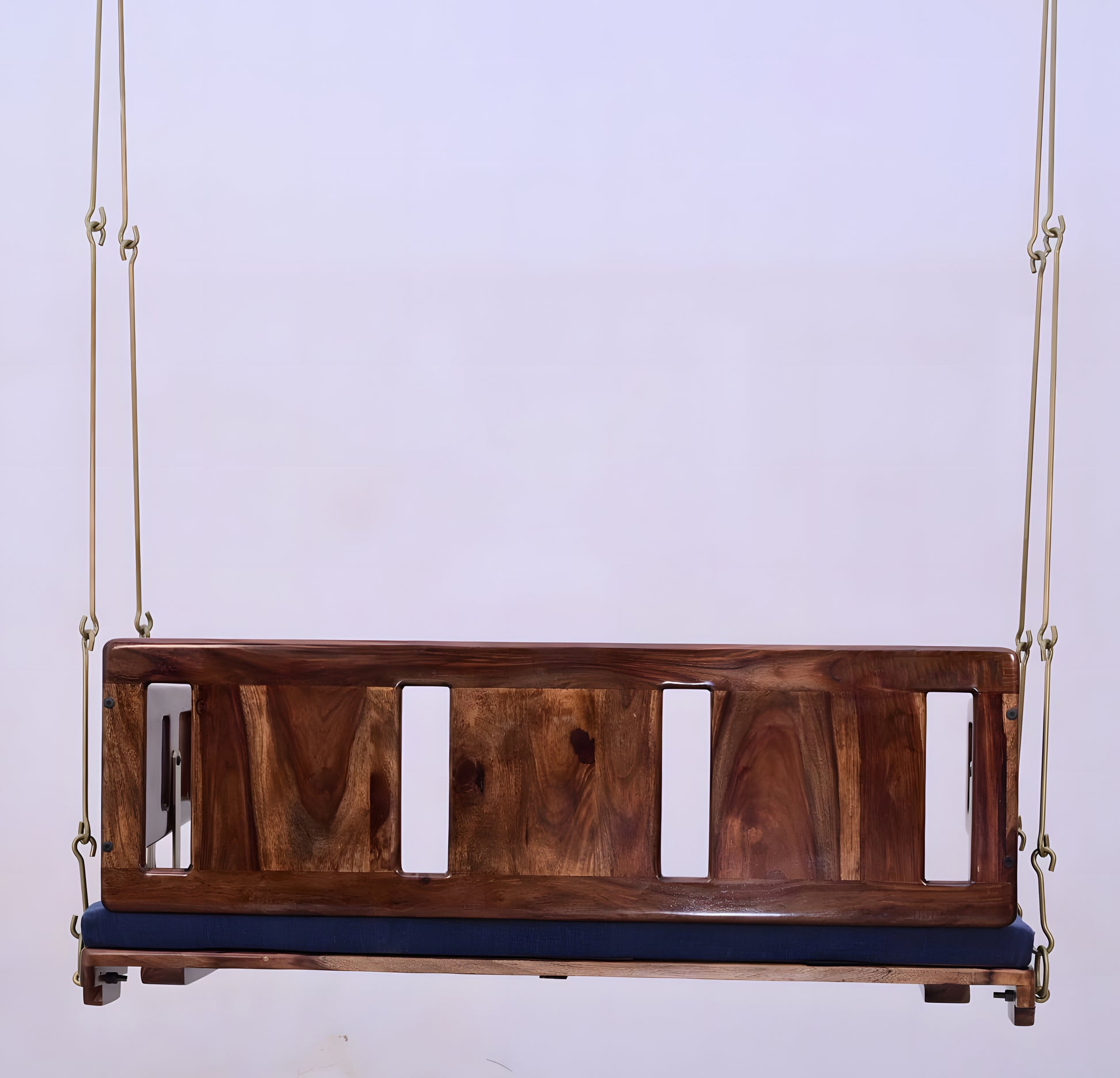 Reversible Wooden Swing Jhula with Brass Coated Chainfor Indoor Outdoor & Balcony | House Swings for Adults (52 Inches, Natural Finish)