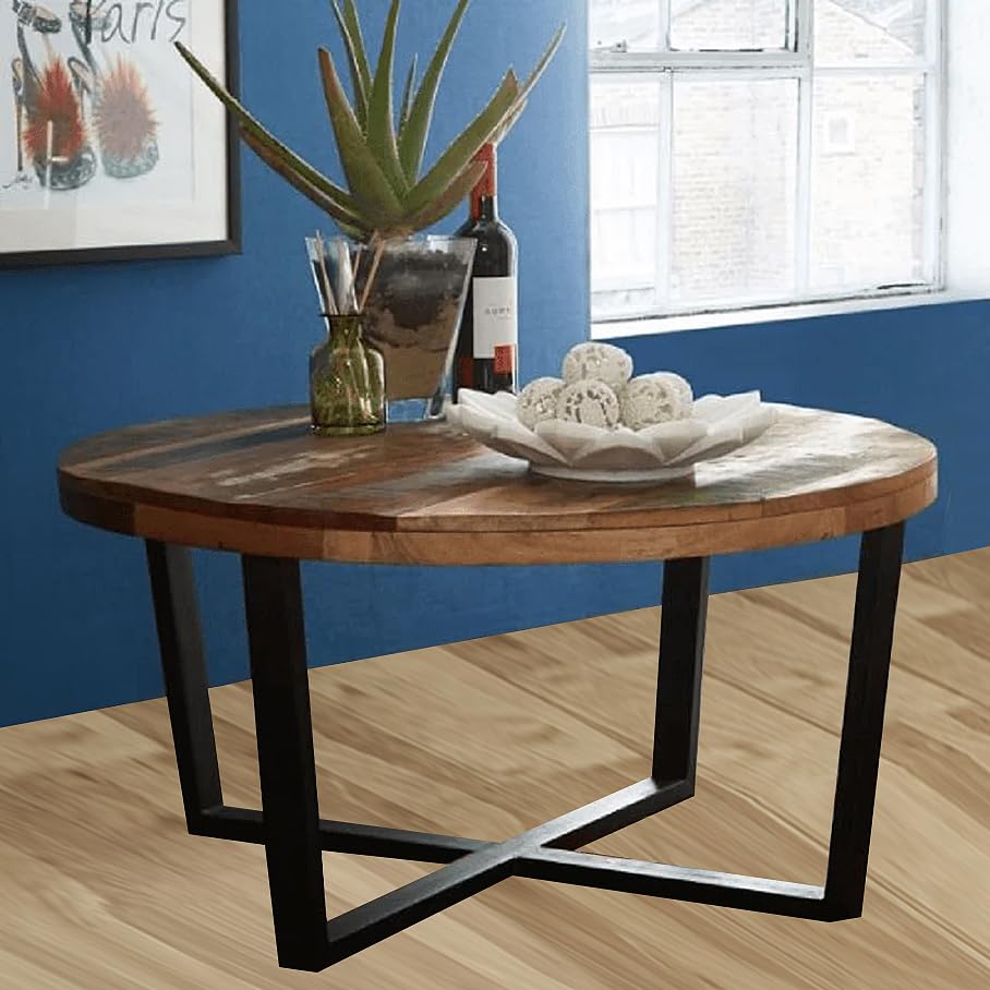 Round Mango Wood Coffee Table | Unique Farmhouse Center Table | Stylish Wooden Accent Table