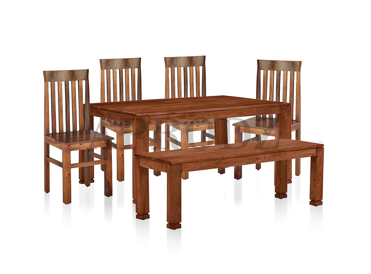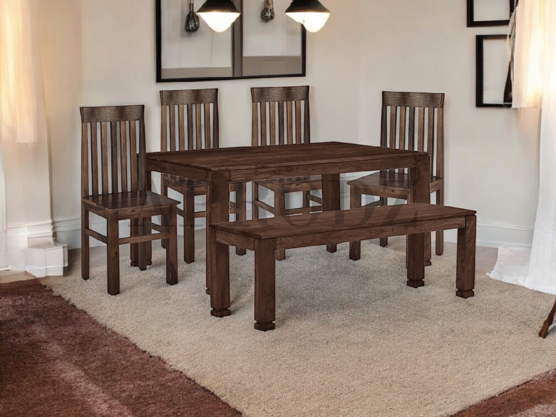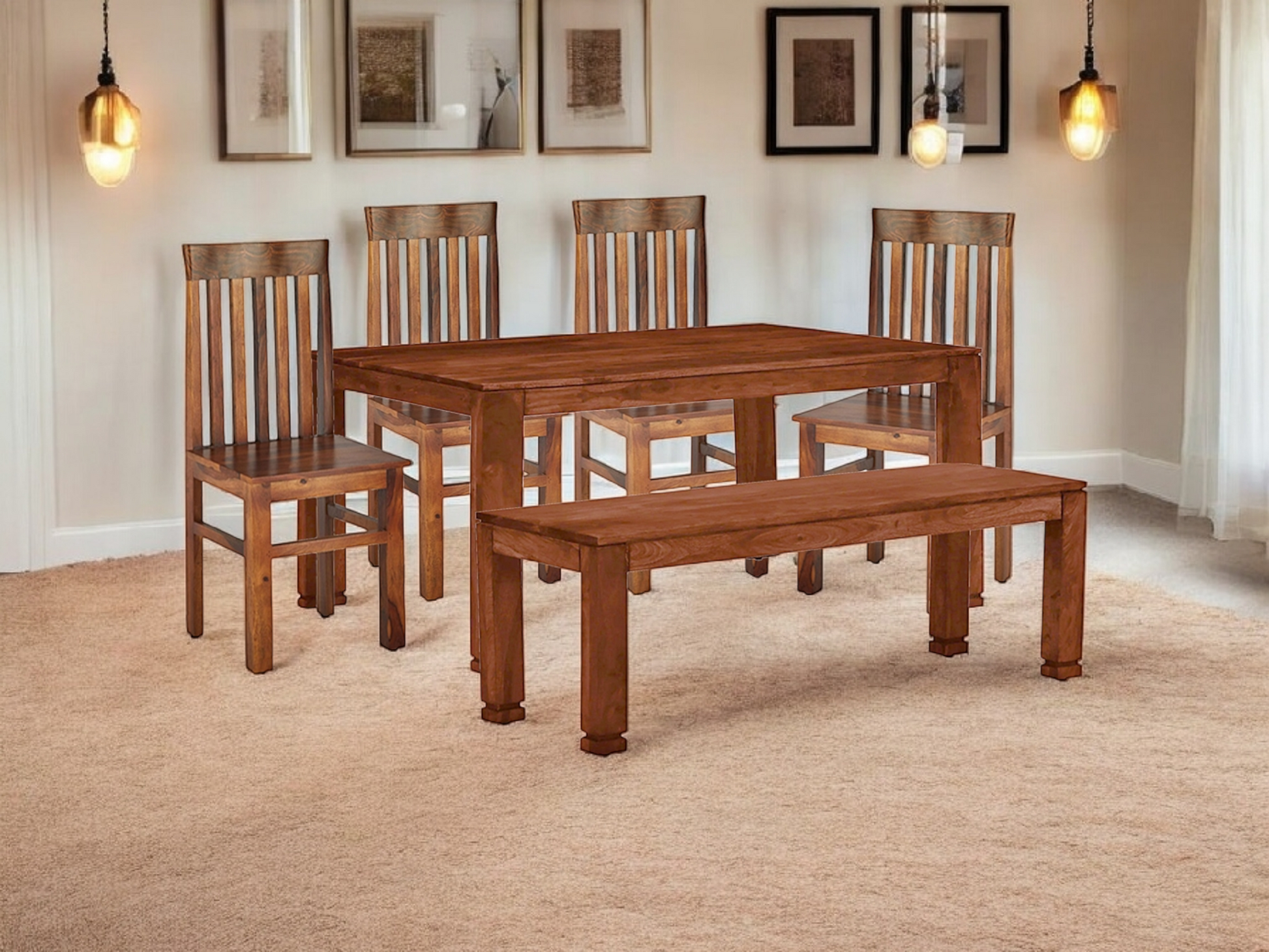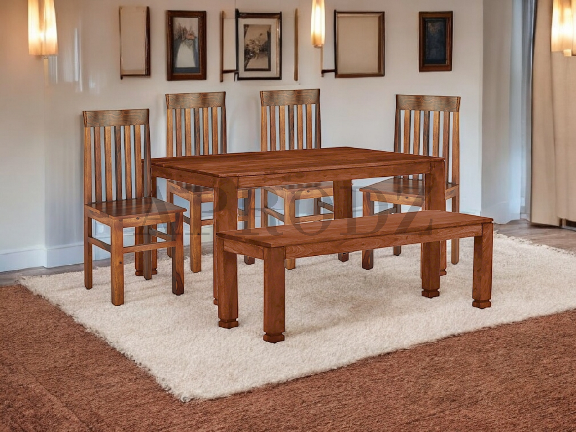 Sheesham Wood Salvador 6 Seater Dining Table Set with 1 Bench and 4 Chair for Home | Dining Furniture
