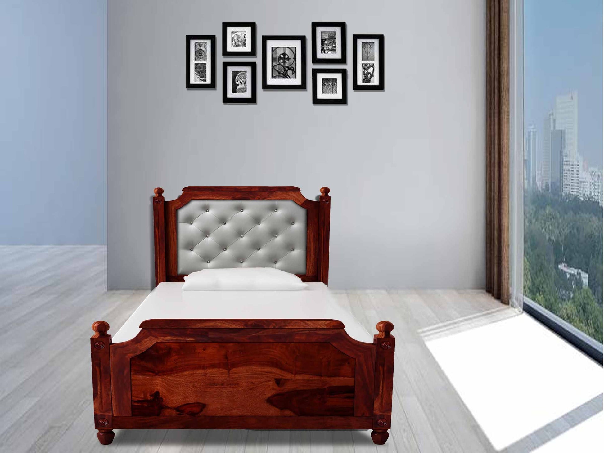 Sheesham Wood Without Storage Single Size Ailsa Bed for Bedroom Stylish | Honey Finish
