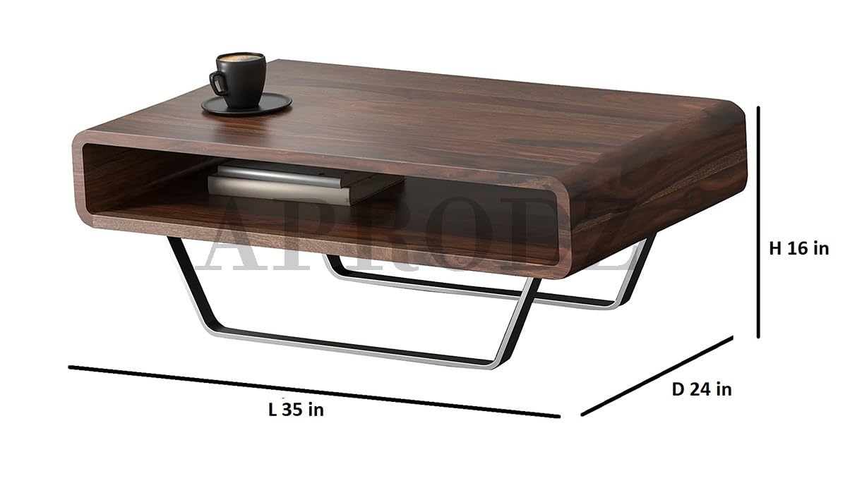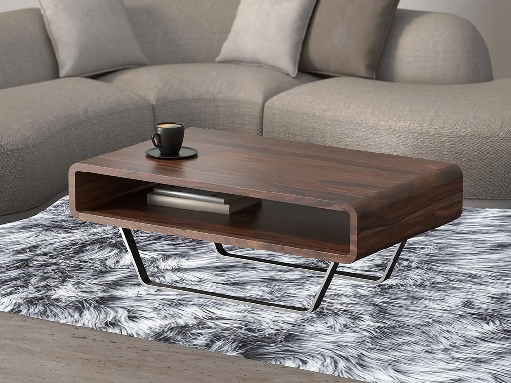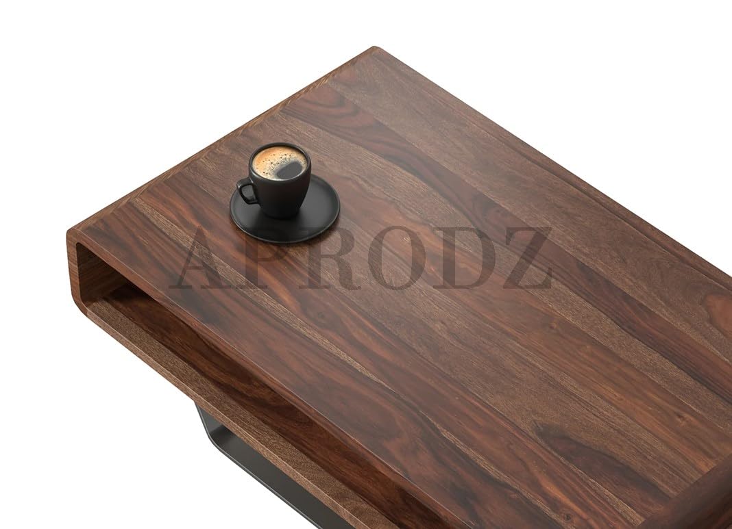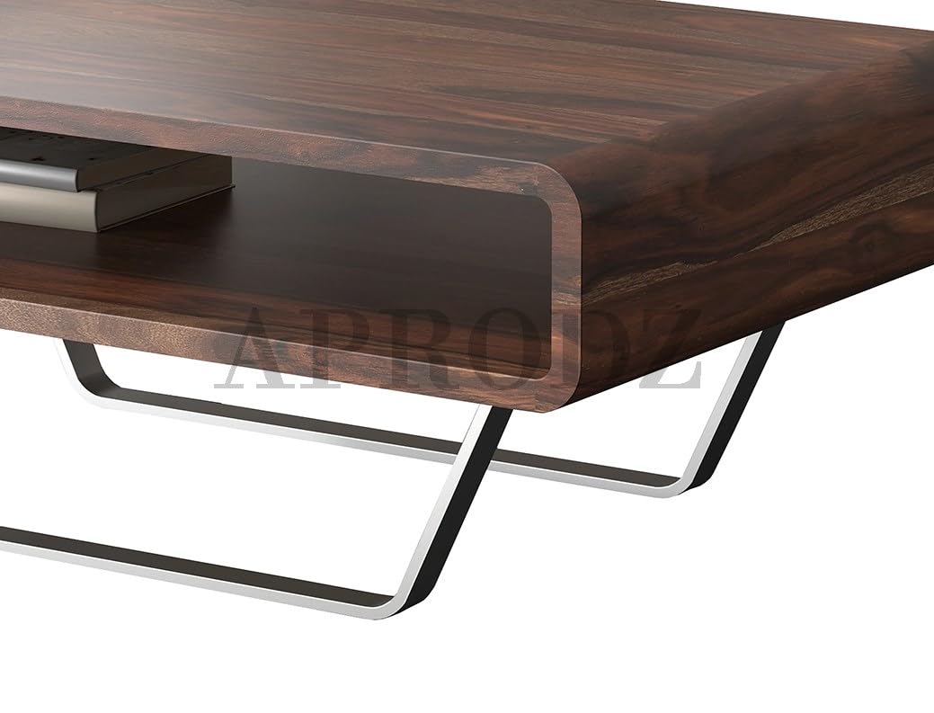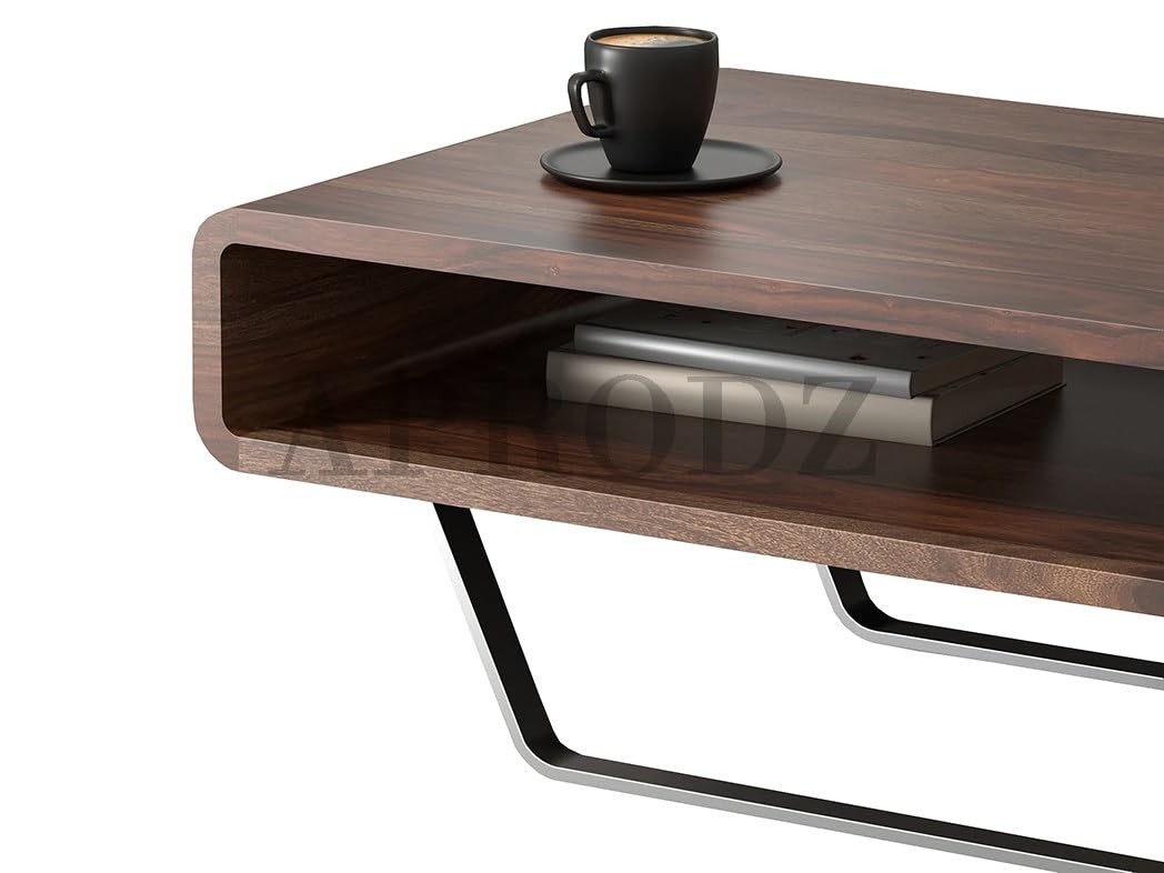 Solid Sheesham Wood & Carbon Steel Coffee Table | Modern Elegance for Your Living Room