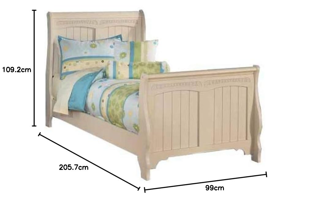 - Product Material:- Solid Wood and Engineered wood, Color:- Cream Finish, Style: Contemporary. Bed Size: Single, Mattress Dimensions: 36" W X 78" L(Not Included)