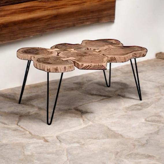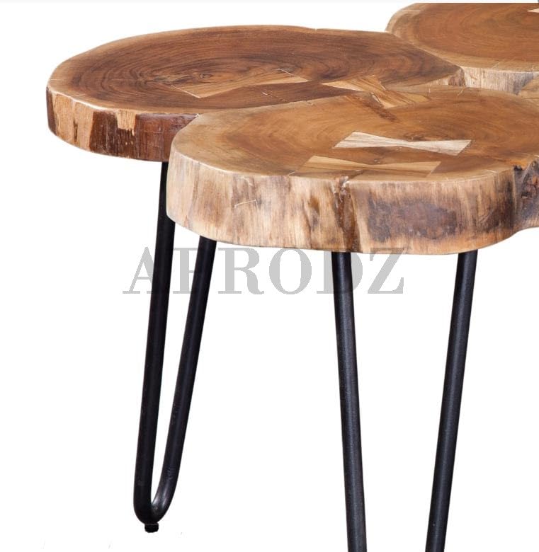 Aprodz Tronco is an attraction for those who loves involvement of the nature in their furniture. Made from Acacia wood or Rose Wood trunk cuts, the piece has ample appeal to the viewers and can decore any interior and décor. Hair pin legs are in strong metal with black powder coating that adds style to the furniture piece. A coffee table to fit into your balcony, garden, farmhouse or any outdoor setup your likes. The trunk logs are finished in wood stain of many shades of your choice. A must-have coffee table nowadays that comes at an attractive price. Aprodz is a leading manufacturer of solid wood and metal furniture and customization is a welcome anytime.