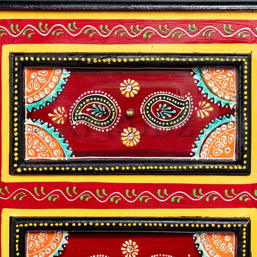 Hand-Painted Wooden Side Table – Artistic Bedside Table with Drawer Storage for Living Room, Bedroom & Home Décor (Multicolor)